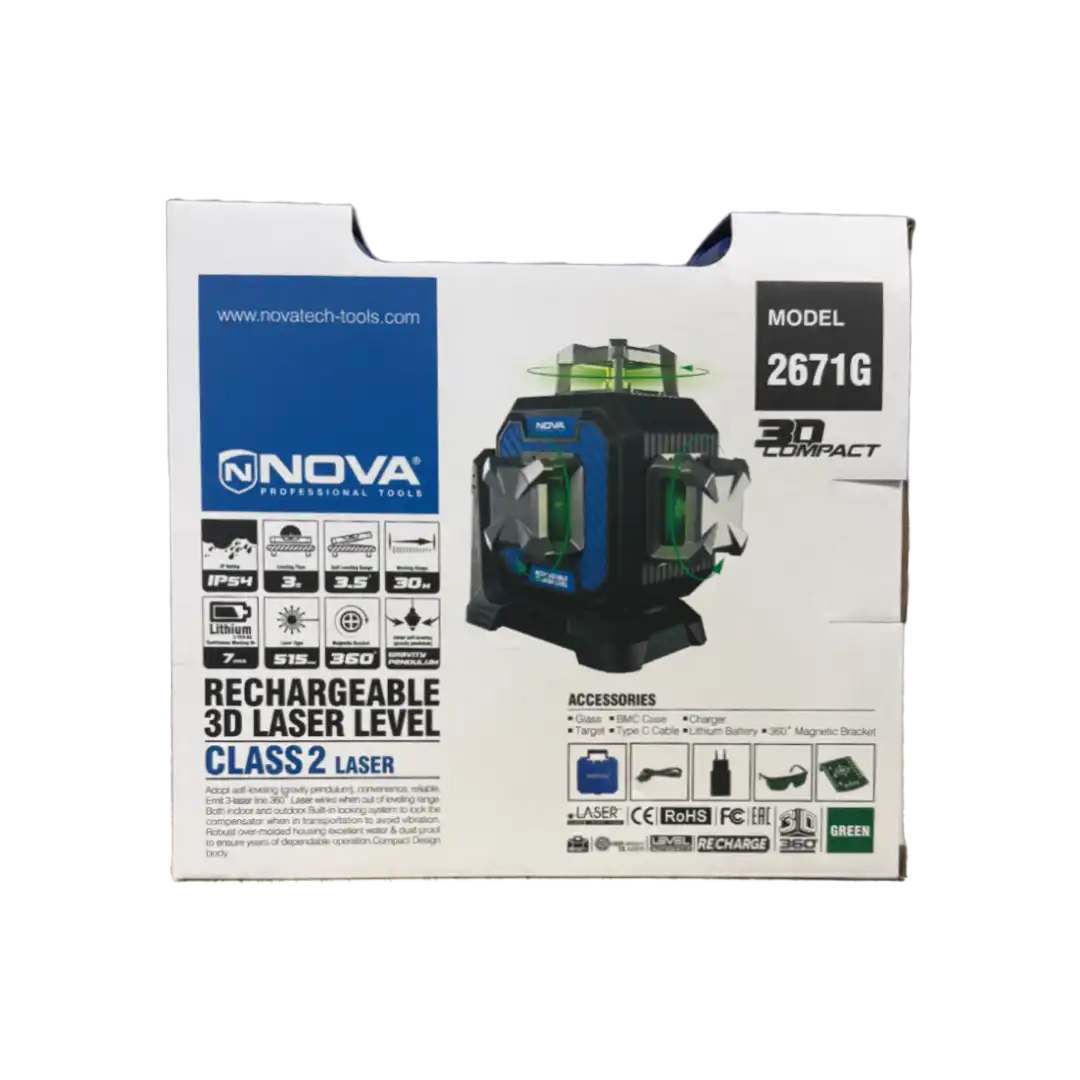 تراز لیزری شارژی چهار بعدی ۳۶۰ درجه سبز نووا مدل ۲۶۷۷G